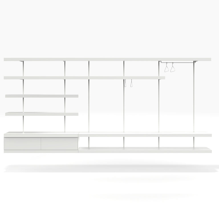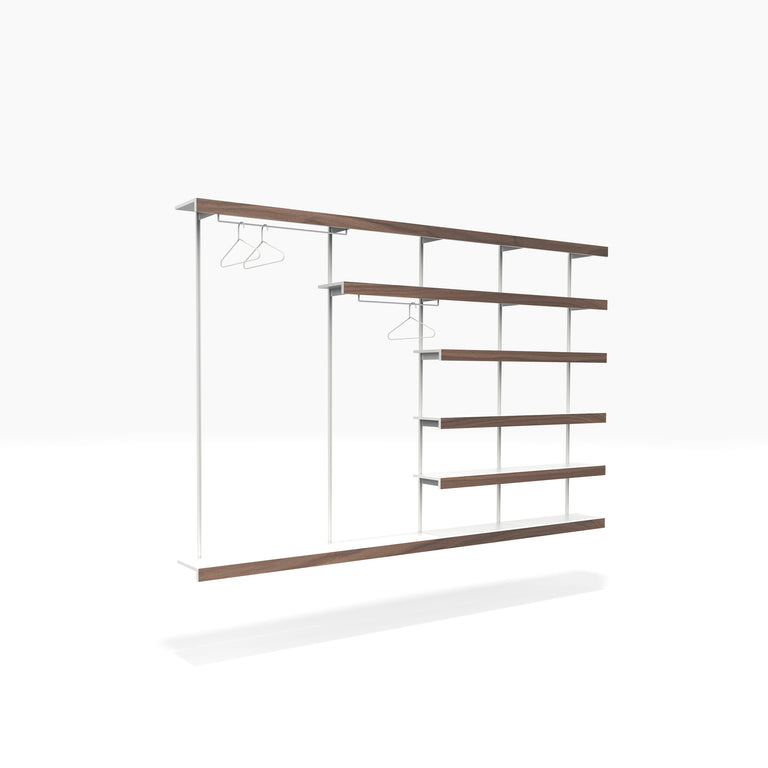 We will design your wardrobe shelving systems free of charge, but to give you an idea of price we have shown a few examples below. Click to see different finishes and prices.