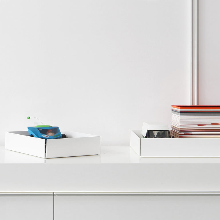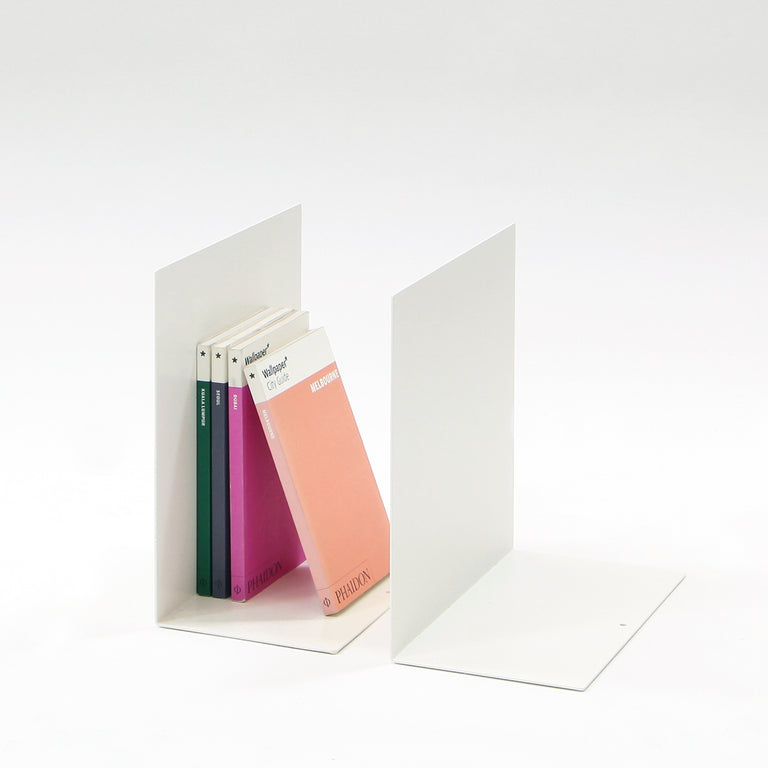 Complete your shelving system with a few different accessories, try our bookends and trays to help organise all your things. Finished white or black to match our shelves.