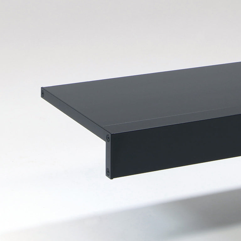 ON&ON black shelves come in 2 depths and any size up to 5m, made from aluminium with a powder coated black finish. Incredibly strong and they are designed to take heavy loads. They will not bow or sag, perfect for creating long seamless shelving or fitting them in to alcoves and between walls.