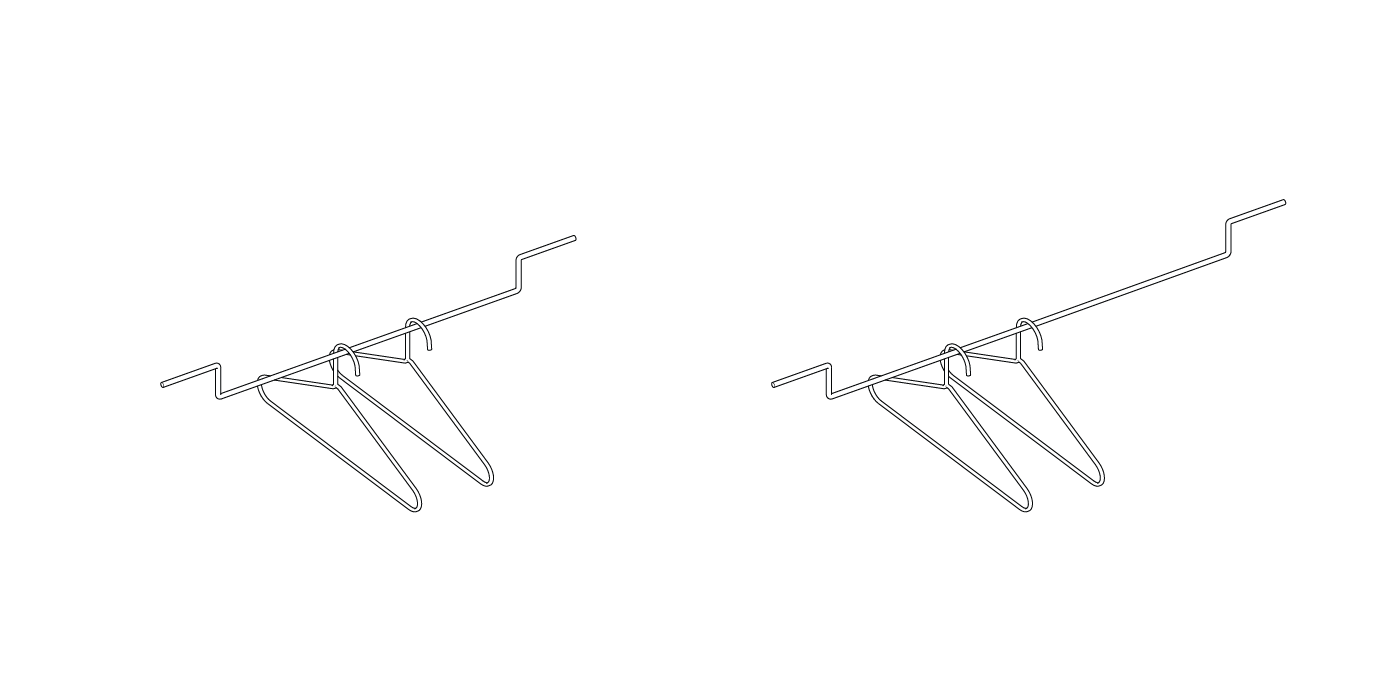 Try combining our clothes hangers and shelving to help store your clothes. They are great for creating open wardrobes or above a kitchen work surface. They come in two sizes and so work with wall rails spaced at different widths, either 65 or 80cm.