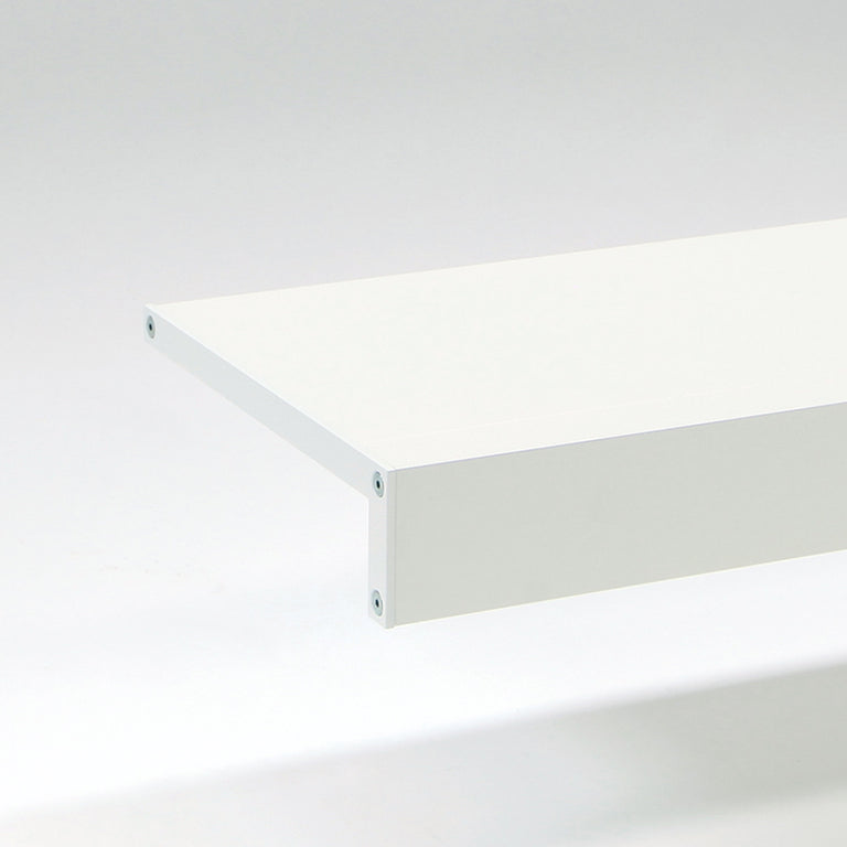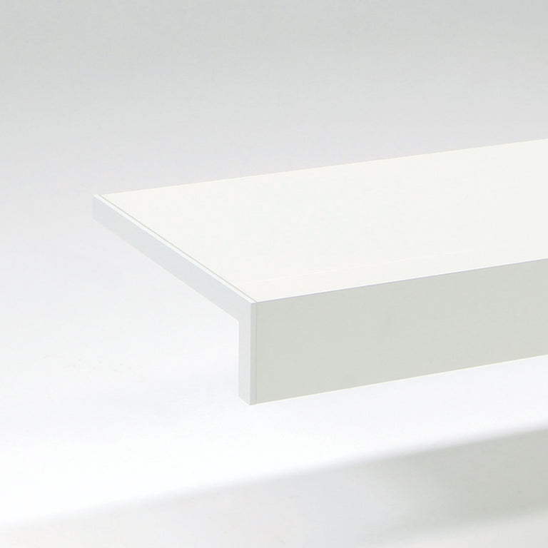 ON&ON white shelves come in 2 depths and any size up to 5m in length. They are made from aluminium with a powder coated white finish. Incredibly strong and they are designed to take heavy loads. They will not bow or sag, perfect for creating long seamless shelving or fitting them in to alcoves and between walls.